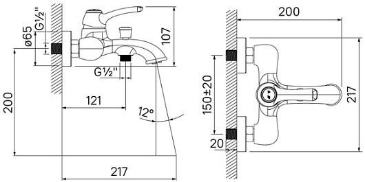 Комплектация: смеситель, эксцентрик (2 шт.), душевая лейка, шланг.