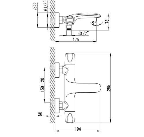 - душевой шланг 1500 мм, лейка - 1 режим Rain