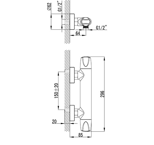 - душевой шланг 1500 мм, лейка - 1 режим Rain