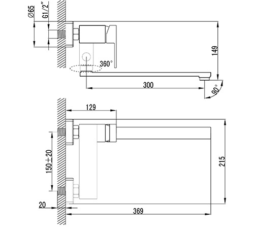 - плоский поворотный излив 300 мм