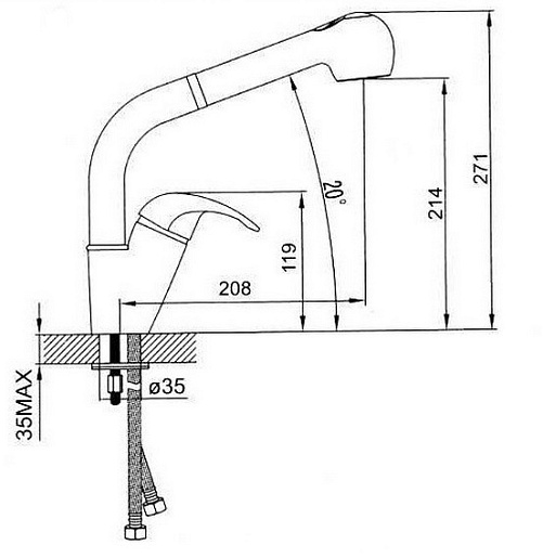 Смеситель "Kitchen K03SBP0I05" для кухонной мойки: