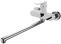 Комплектация: смеситель, гибкая подводка, душевая лейка, шланг, держатель лейки.