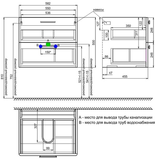 Комплектация: тумба под раковину, крепеж.