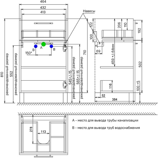 Комплектация: тумба под раковину, ножка (2 шт.), раковина, крепеж.
