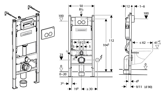 Описание: готовое решение для санузлов. Объем бачка /4.5, 3/6, 3/7,5, 4/6 л. Унитаз подвесной, с системой антивсплеск, с ободком. Монтаж бачка в стену.