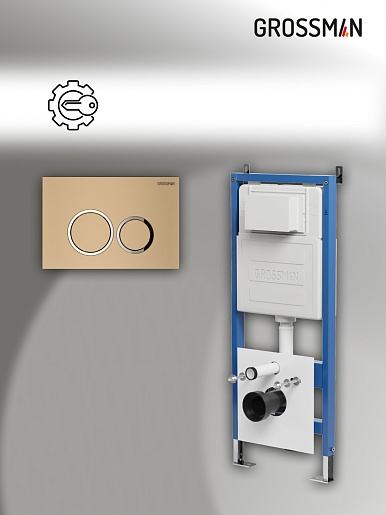 Grossman Инсталляция для подвесного унитаза Galaxy 97.01.310 с клавишей смыва золото матовое