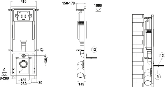 - Межосевое расстояние под крепеж унитаза: 18, 23 см.