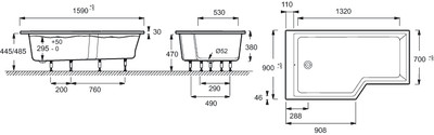 - Акриловая ванна-душ с большим душевым пространством 90х90 см.