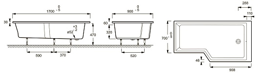 Jacob Delafon Акриловая ванна Bain Douche NEO E6D002R-00 170х90/70 R