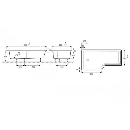 - Акриловая ванна-душ с большим душевым пространством