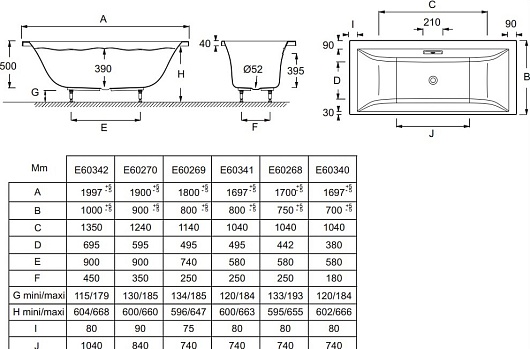 Jacob Delafon Акриловая ванна Evok E60270CR-00 190х90 см с системой CHROM'O