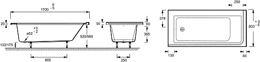 Акриловая ванна Jacob Delafon Formilia 170x80 L с гидромассажем - арт. E5TN6140RU-00.