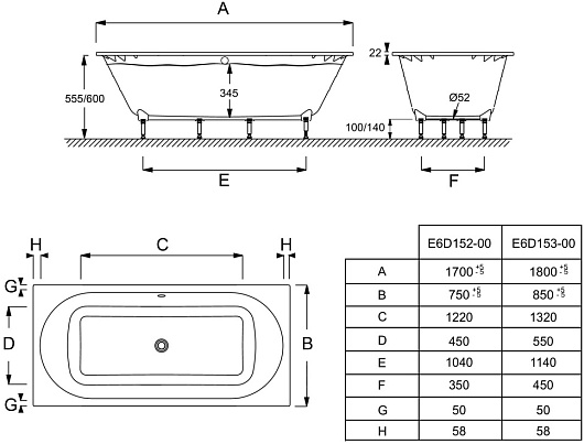 Акриловая ванна Jacob Delafon Odeon Rive Gauche 170x75 - арт. E6D152-00.