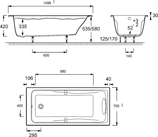 Комплектация: ванна, ножки, ручки, подголовник.
