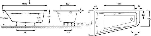 Акриловая ванна Jacob Delafon Odeon Up 160x90 L с гидромассажем Tonus+ - арт. E5TN2260RU-00.