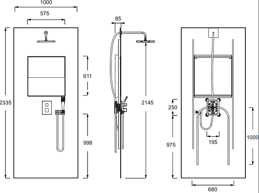 - Возможна угловая установка на душевой поддон (как встраиваемый, так и напольный), а также установка на плитку