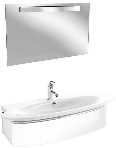 Описание: изящество подвесной тумбы подчеркивается плавными изгибами корпуса и фасада выдвижного ящика с доводчиками и скрытыми ручками. В комплект входит белоснежная фарфоровая раковина Presquile E4435 (130х50 см).