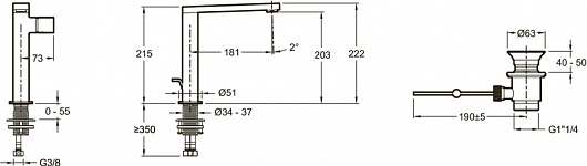 Высота излива, мм: