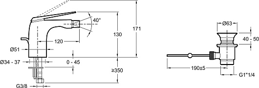 - Расстояние между центром излива и центральной осью корпуса, мм: 120