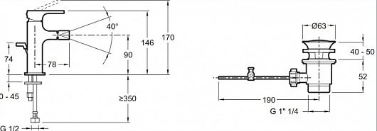 Высота излива, мм: