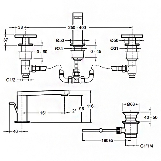 - монтаж на три отверстия