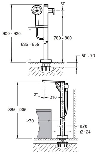 - Высота под изливом: 885 - 905 мм