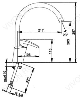 - длина излива 217 мм