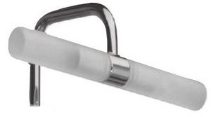 Описание: два матовых стеклянных плафона округлой формы, изящное хромированное крепление, галогеновая лампа.