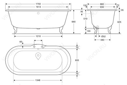 - внешняя сторона ванны неокрашена, покрыта антикоррозийным покрытием (требуется покраска)