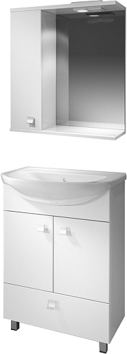 Комплектация: Зеркальное полотно с нижней полкой и козырьком с встроенным галогеновым светильником и выключателем. Слева распашной ящик с внутренней полкой.