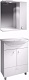 Комплектация: Зеркальное полотно с нижней полкой и козырьком с встроенным галогеновым светильником и выключателем. Слева распашной ящик с внутренней полкой.