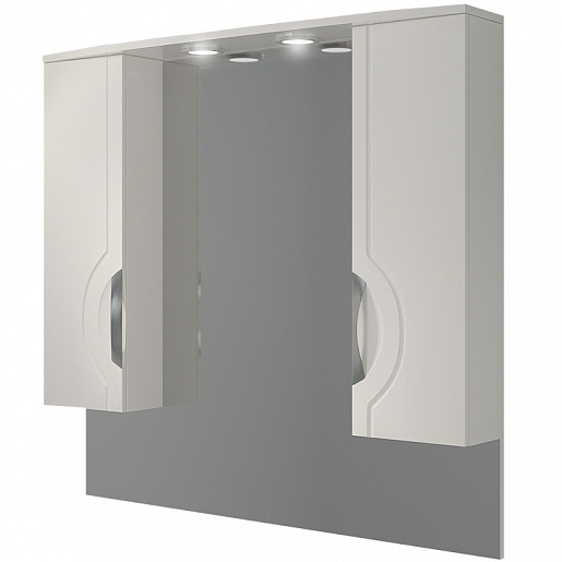 Комплектация: Зеркальное полотно, слева и справа распашные шкафы с внутренними полками, встроенная подсветка.