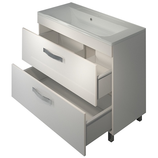 - тумба под раковину: выдвижные ящики, металлические ручки, ножки.