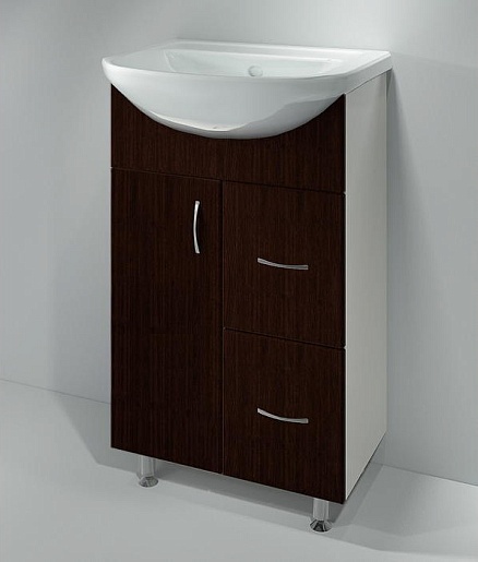 - тумба под раковину: распашная дверца, 2 выдвижных ящика, металлические ручки (хром), ножки
