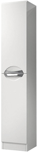 Описание: напольный пенал для ванной с двумя распашными дверцами. Врезные металлические хромированные ручки.