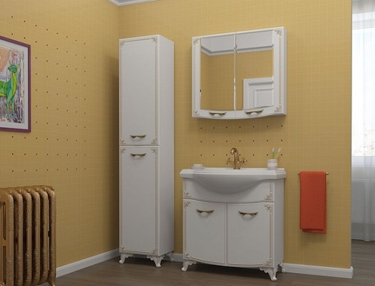 Какса-а Пенал для ванной Классик-Д 40 белый/золото