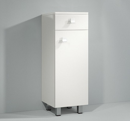 Комплектация: Тумба напольная на ножках с распашной дверцей и выдвижным ящиком. Универсальная ориентация.