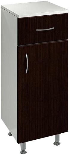 Комплектация: Тумба напольная на ножках с распашной дверцей и выдвижным ящиком. Универсальная ориентация.