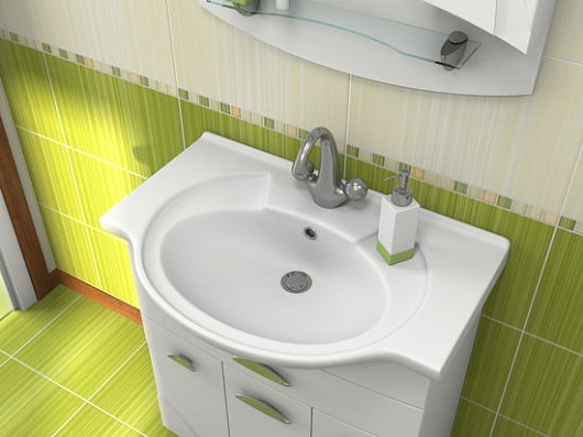 - тумба под раковину: распашные дверцы, выдвижной ящик, металлические ручки (хром), ножки