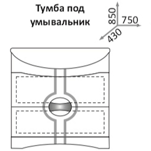 - тумба под раковину: 2 выдвижных ящика, металлические ручки (хром)