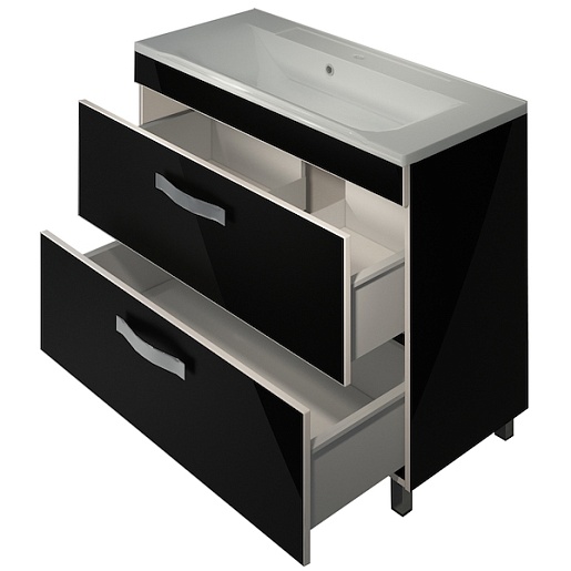 - тумба под раковину: выдвижные ящики, металлические ручки, ножки.