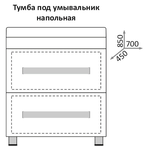 - тумба под раковину: выдвижные ящики, металлические ручки
