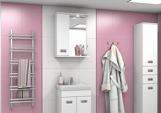 - тумба под раковину: 2 распашные дверцы, врезные металлические ручки (хром)