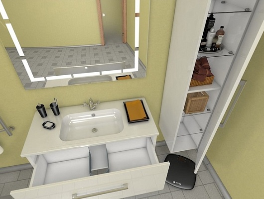 - тумба под раковину: выдвижной ящик, металлическая ручка