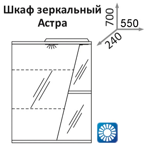 Зеркальный шкаф «Астра 55» с подсветкой, арт. 001838 (L)