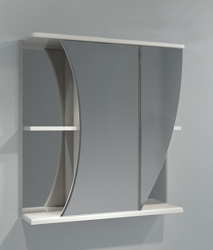 Комплектация: Распашные зеркальные дверцы асимметричной формы. Справа и слева полки.