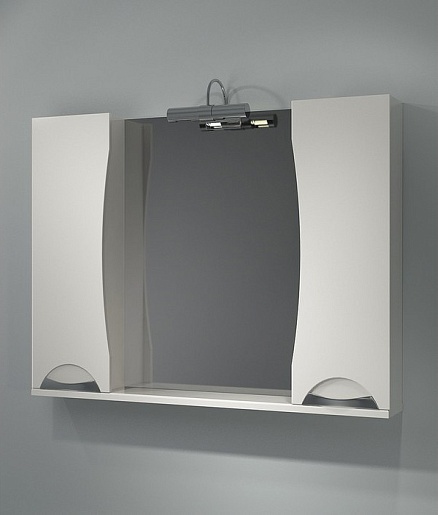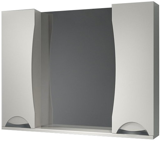Комплектация: Зеркальное полотно с нижней полкой может быть дополнено светильником. Слева и справа распашные шкафы с внутренними полками.