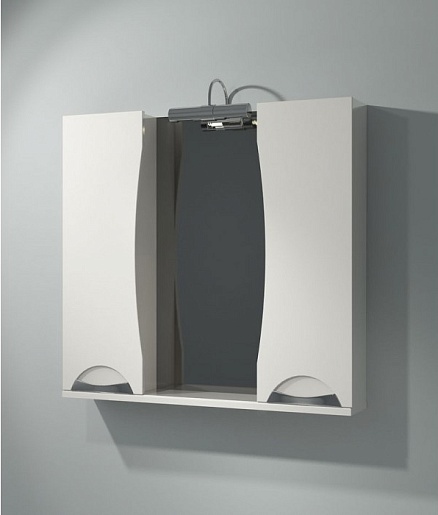 Комплектация: Зеркальное полотно с нижней полкой может быть дополнено светильником. Слева и справа распашные шкафы с внутренними полками.