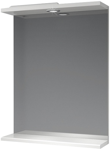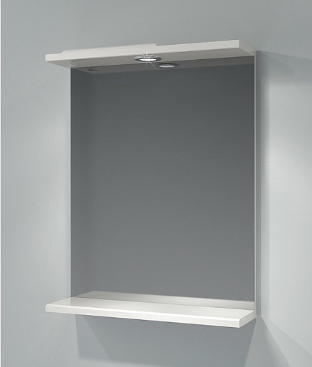 Комплектация: зеркальное полотно с нижней полкой. Козырек с встроенным галогеновым светильником и выключателем