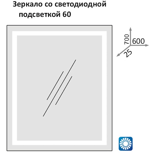 Комплектация: влагостойкое зеркальное полотно, LED подсветка.